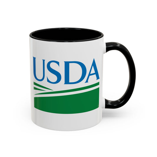United States Department of Agriculture Seal Coffee Mug - Double Sided Print, Black Accent White Ceramic, 11oz by TheGlassyLass