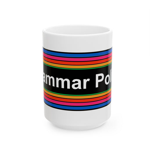 Rainbow Grammar Police Coffee Mug -Wrap Print White Ceramic 11oz - by TheGlassyLass