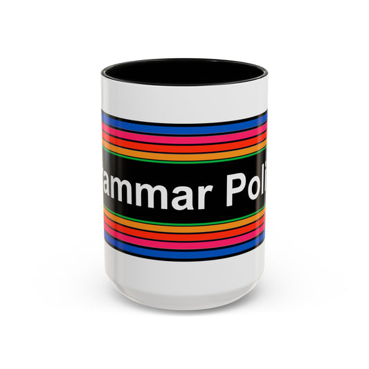 Rainbow Grammar Police Coffee Mug - Wrap Print Black Accent Ceramic 15oz - by TheGlassyLass