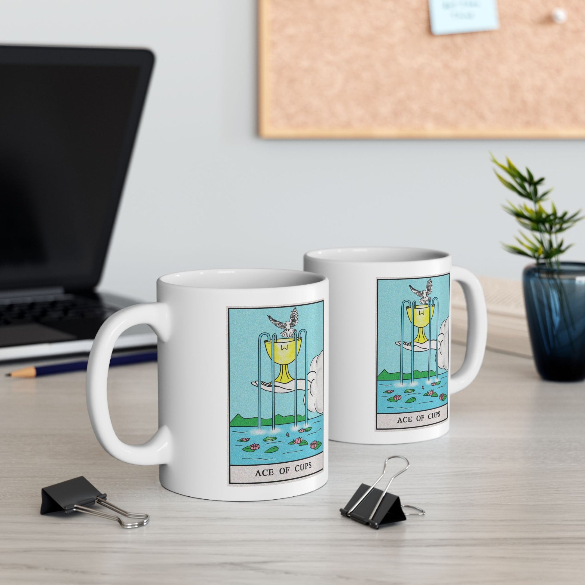 Ace of Cups Tarot Card Coffee Mug - Double Sided Print, White Ceramic, 11oz by TheGlassyLass.com