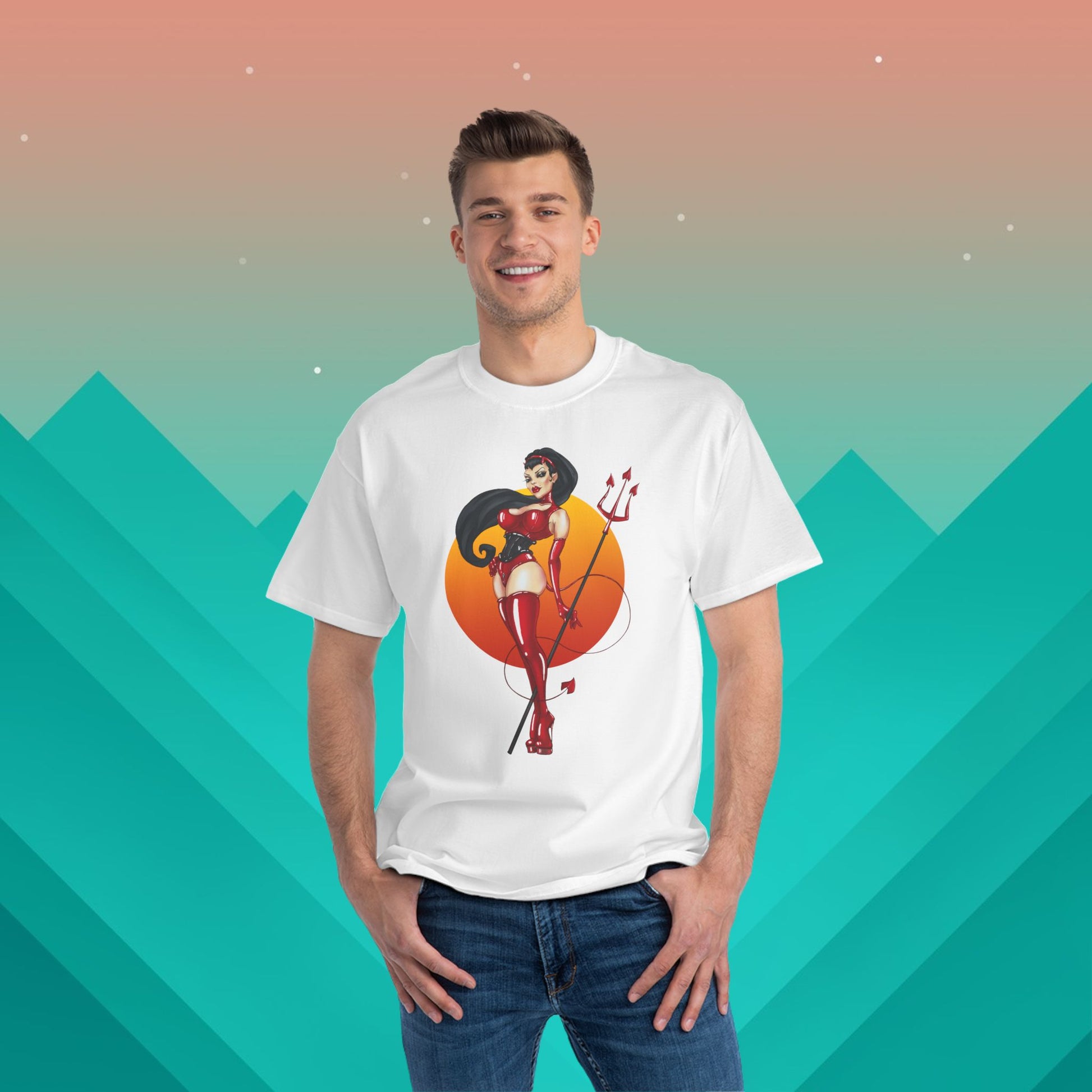 This listing is for a premium quality Hanes Beefy-T 100% Cotton T-Shirt with a Devil Girl Anime graphic printed to the front of the shirt.