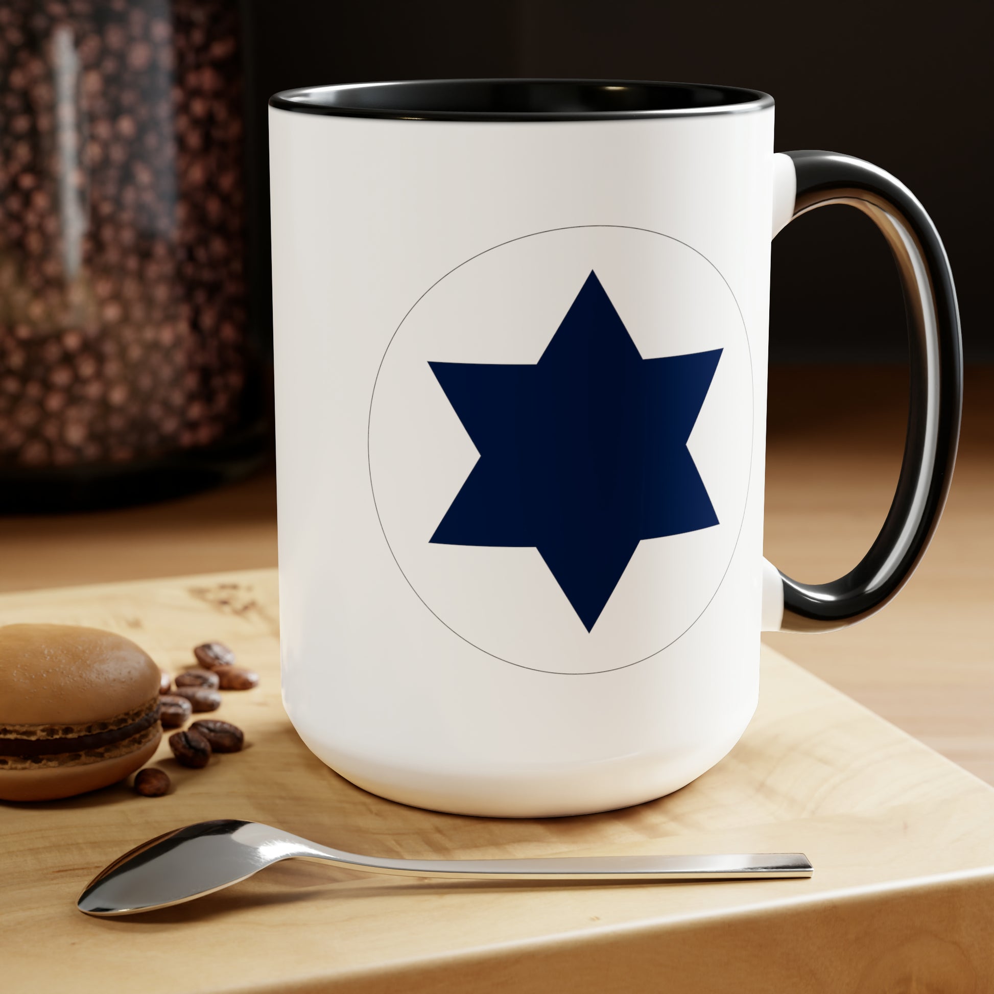 Israeli Air Force Roundel Coffee Mug - Double Sided Black Accent Ceramic 15oz - by TheGlassyLass.com
