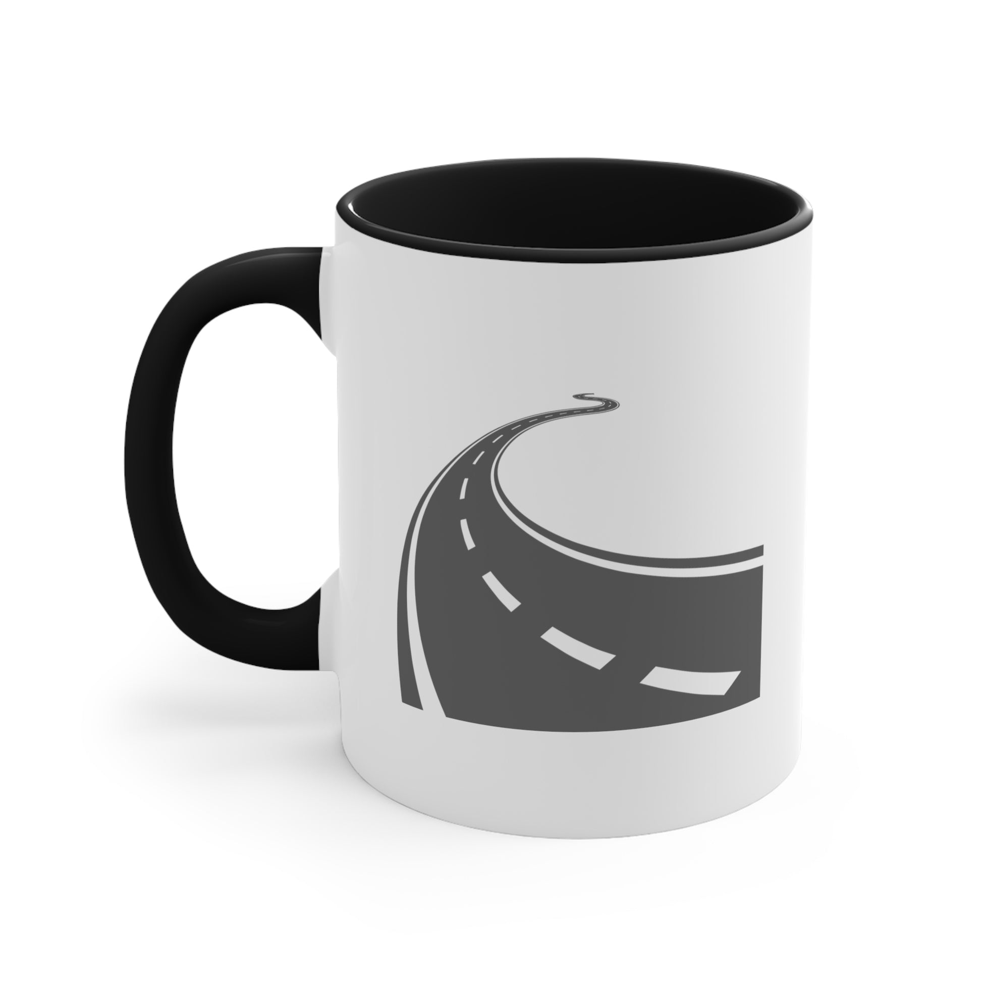 Long and Winding Road Coffee Mug - Double Sided Black Accent White Ceramic 11oz by TheGlassyLass.com