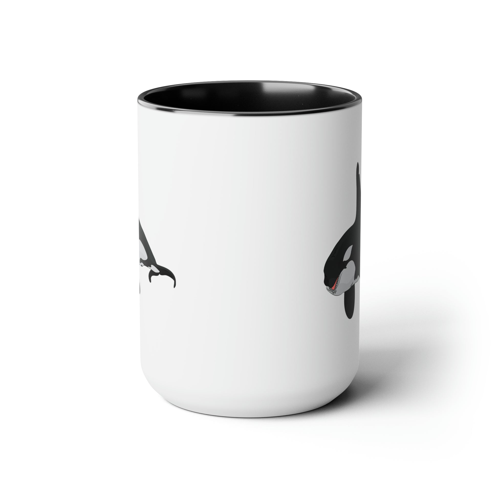 Orca Killer Whale Coffee Mugs - Double Sided Black Accent White Ceramic 15oz by TheGlassyLass.com