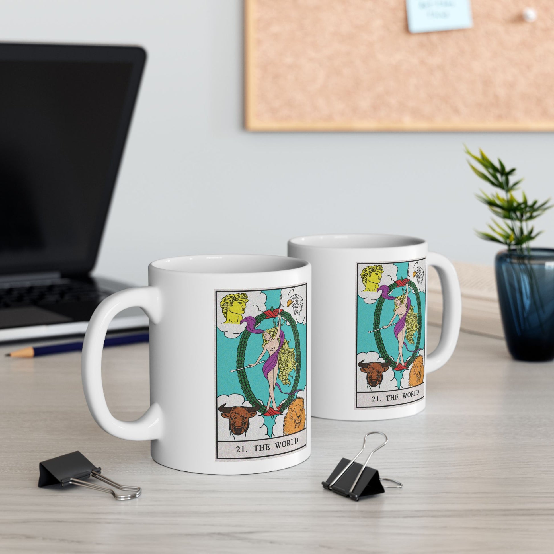 The World Tarot Card Coffee Mug - Double Sided Print, White Ceramic, 11oz by TheGlassyLass