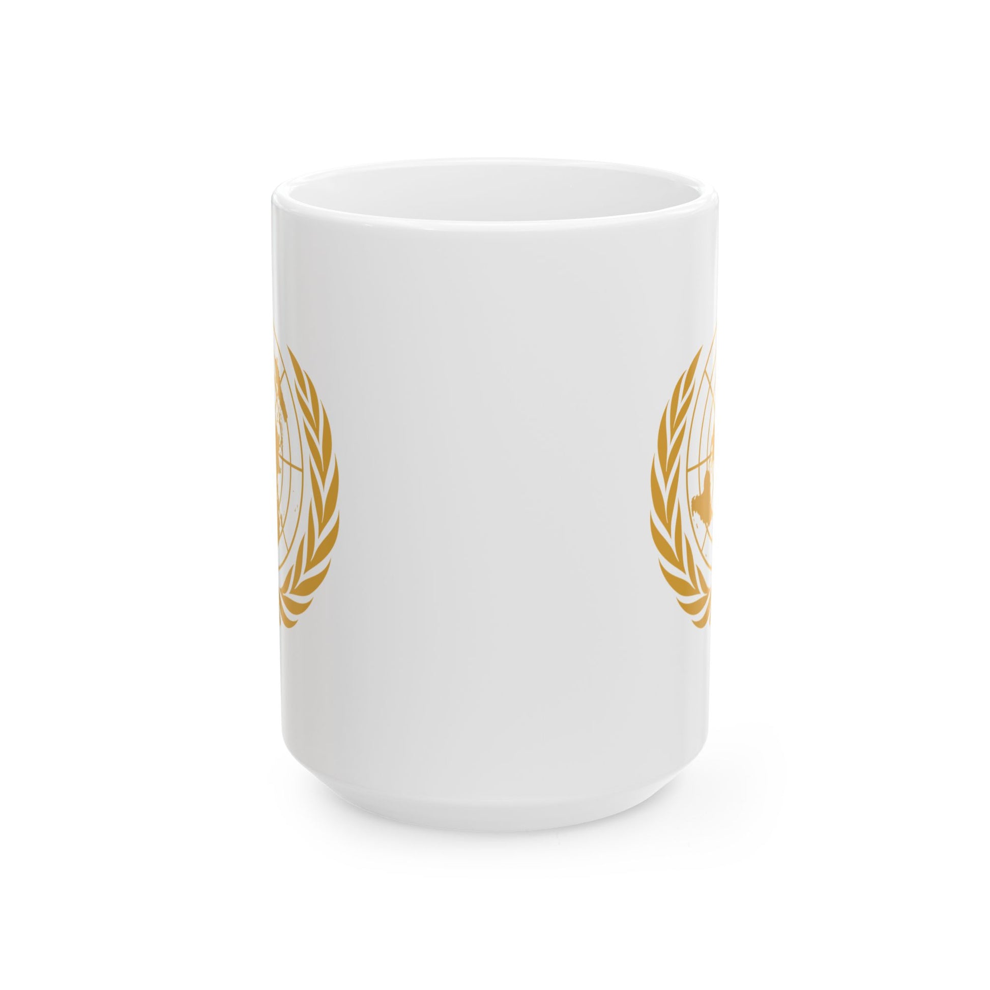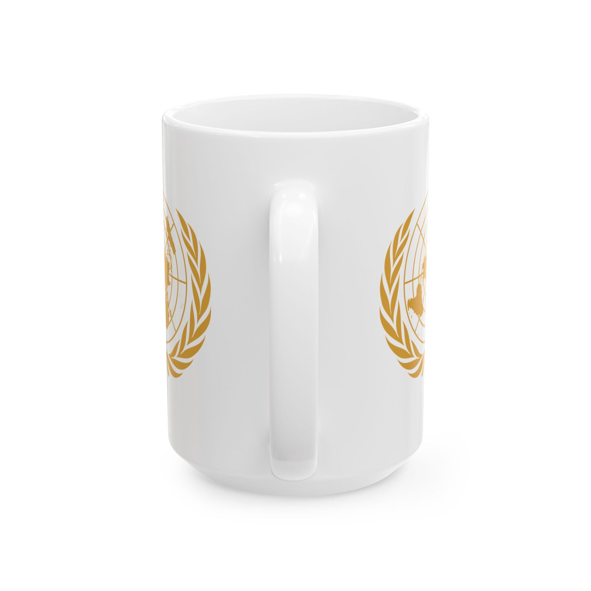 This listing is for a Premium Quality 15oz White Ceramic coffee / tea mug with a double sided United Nations Seal. *